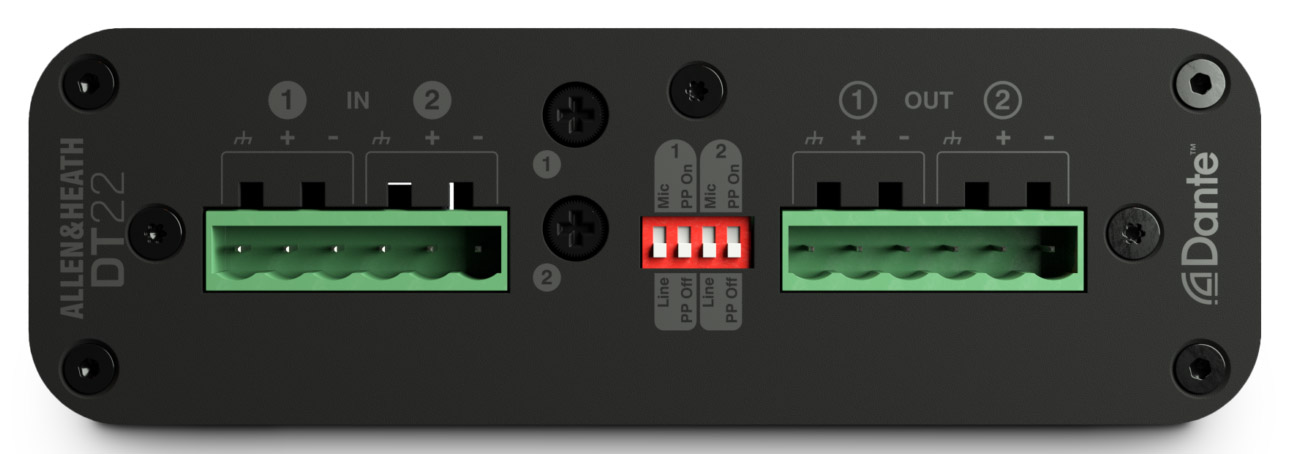 ALLEN & HEATH DT22-M DANTE INTERFACE Portable, 2x inputs, 2x outputs, Phoenix connections Code stock : 95-7879