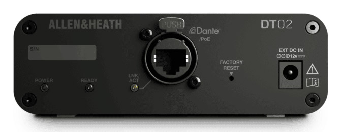 ALLEN & HEATH DT02-M DANTE INTERFACE Portable, 2x outputs, 3-pin XLR connections Code stock : 95-7881