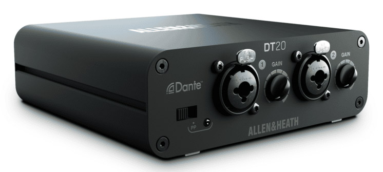 ALLEN & HEATH DT20-M DANTE INTERFACE Portable, 2x inputs, 3-pin XLR connections Code stock : 95-7882