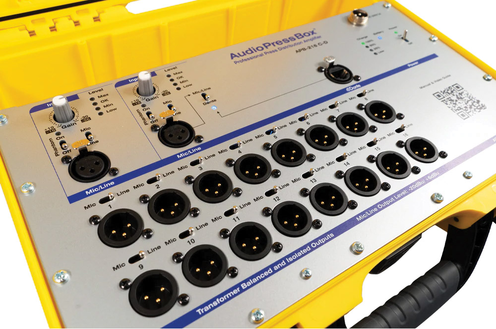 Les splitters de conférence Dante sont utilisés pour éviter l'encombrement disgracieux produit lors d'événements tels que conférences de presse, lorsque chaque organisme de radiodiffusion présent essaie d'installer un microphone directement devant l'orateur, précisément là où les cameramen préféreraient qu'il ne le fasse pas. Le splitter prend un petit nombre d'entrées provenant de microphones ou de la table de mixage locale et distribue le signal à un grand nombre de sorties à l'usage des médias. AudioPressBox propose une gamme complète de types actifs et passifs dans des formats de type boîte de scène, boîte de sol, bureau, rack et montage mural, ainsi que des splitters et des kits portables et en boîtier.