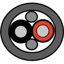 Câbles pour haut-parleurs à deux conducteurs de 2,5 mm² de section, conformes aux exigences de la norme Euroclasse CPR jusqu'à B2ca. Les conducteurs torsadés en cuivre nu sans oxygène offrent une haute conductivité avec une isolation et une gaine extérieure à faible risque d'incendie ('LSOH').