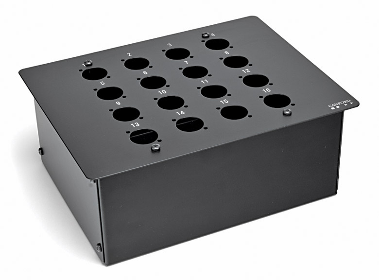 Les boîtiers de scène Canford peuvent être livrés montés et/ou câblés selon vos besoins. Les plaques latérales peuvent être embouties et gravée sur mesure.