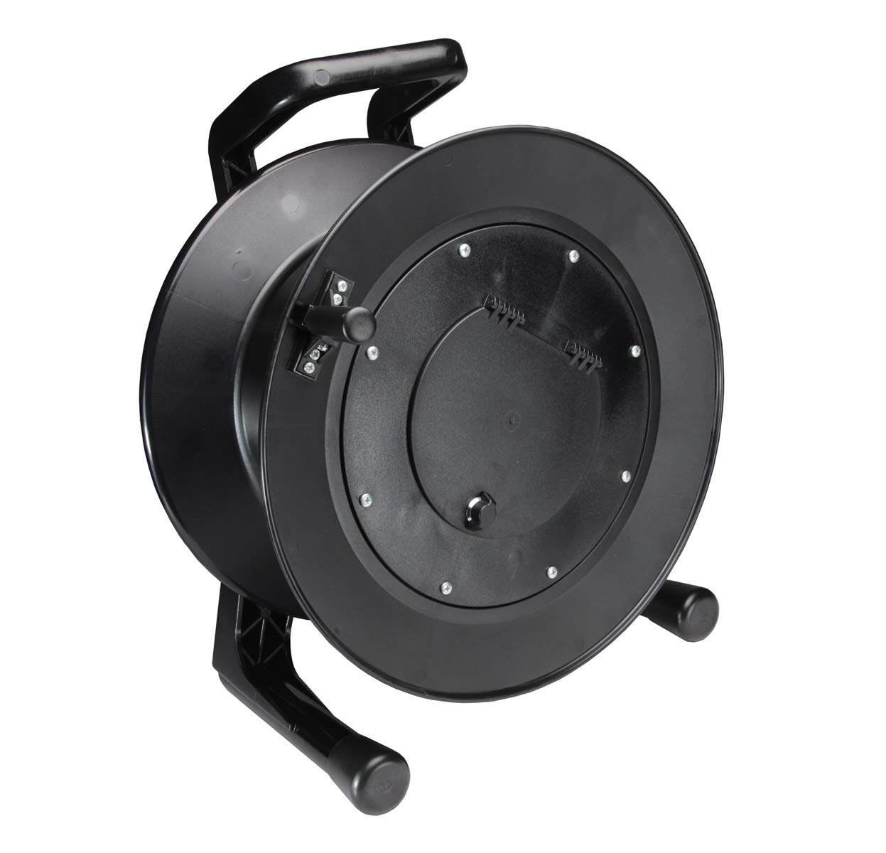Tous les enrouleurs de câble de cette gamme extrêmement solide ont un tambour en caoutchouc synthétique, avec châssis en plastique moulé de haute solidité. Tous ont un frein de tambour à friction incorporé dans le châssis pour éviter les mouvements pendant le transport. Les tambours sont disponibles avec deux styles de joue latérale différents - avec plaque de masquage, ou avec supports pour extrémité interne du câble.