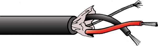 L'isolation des fils est en polypropylène qui ne se rétracte que très peu au soudage (considérablement moins que le PVC ou le polyéthylène). Le feuillard de blindage est lié à la gaine de telle manière que le dénudage puisse se faire d'un seul coup en libérant les fils de signaux et terre.