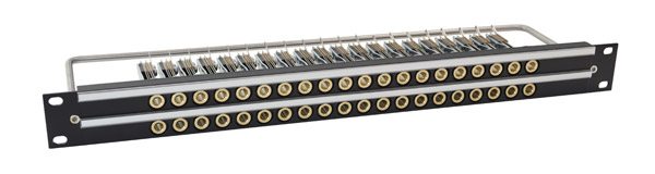 Les prises Mosses et Mitchell de type GPO, standard de l'industrie, sont placées en "mono-pitch" (espacement égal) sur deux rangées de 20, 24 ou 26 dans un panneau 1U. Les prises sont à 5 points, à contact palladium, avec un cadre nickelé très résistant et une bague frontale en laiton pour garantir une durée de vie opérationnelle longue et fiable. Ils sont livrés avec une barre de laçage centrale et une bande légende à clipser pour chaque rangée de prises. Profondeur totale : 115 mm.
