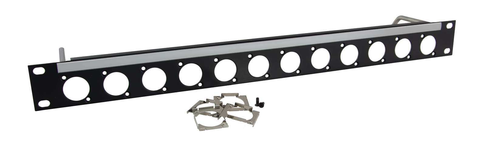Panneaux 1U polyvalents conçus pour une installation par l'arrière de connecteurs sans l'utilisation d'outils spécialisés ou de visserie difficile à manipuler. En acier de 2mm d'épaisseur, ces panneaux n'ont qu'un seul retour sur leur partie supérieure afin de permettre la fixation de cadre de montage taraudés à l'aide des écrous M3 inclus, sur lesquels tout connecteur Neutrik de série D ou Canford Universal peut être clipsé. Ces panneaux sont également adapté au montage par l'arrière de connecteur Neutrik Speakon et Powercon de série D.