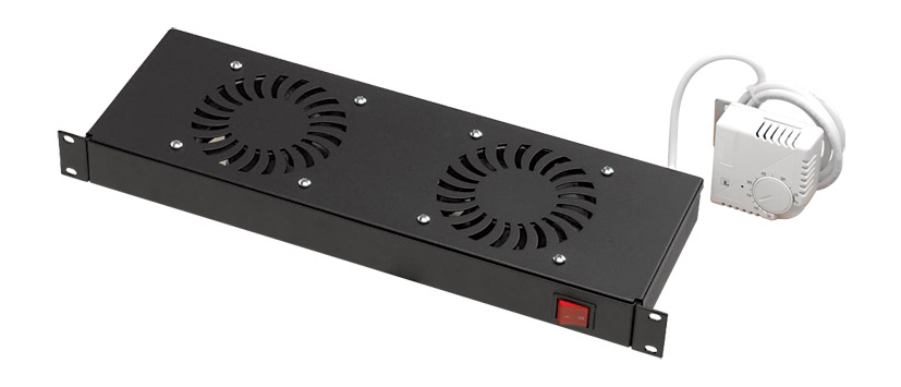 Ces unités sont disponibles avec jusqu’à 2 ou 3 ventilateurs avec ou sans thermostat analogique, pour refroidir convenablement les appareils électroniques. Panneau frontal fini gris RAL7035 ou noir RAL9005, avec témoin secteur. Alimentation 220-240V AC par câble secteur captif dénudé, les modèles avec thermostat étant connectés au thermostat analogique fonctionnant entre 0-35°C par un cordon de 1,5m.