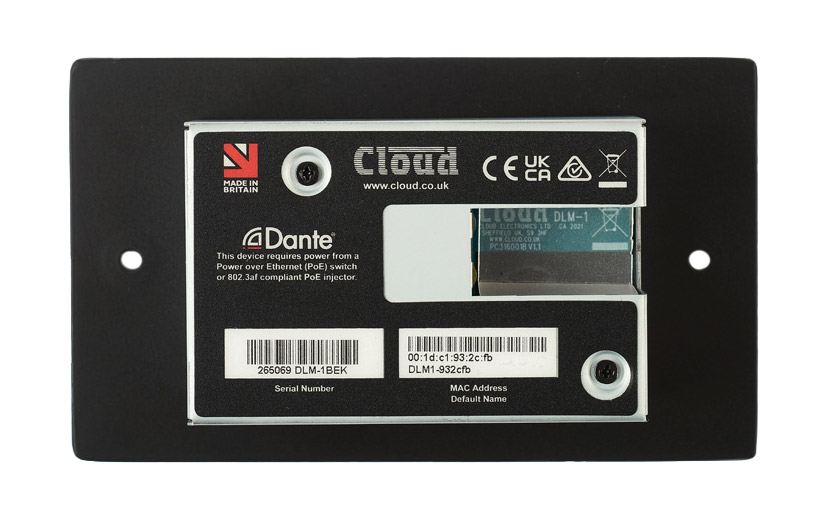 CLOUD DLM-1B PLAQUE D'ENTREE Dante, entrée micro/ligne, contrôle de niveau micro/musique, noir Noir Code stock : 93-0740