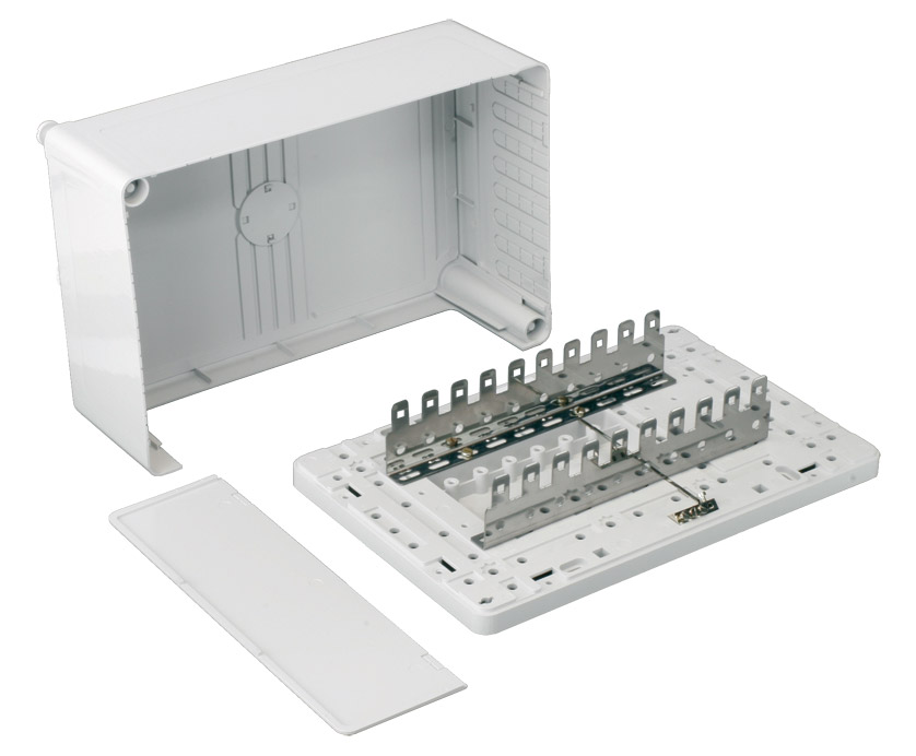 Boîtes de connexion prêtes à l’emploi pour des configurations faible encombrement ou haute densité en boîtiers plastiques, avec ancrage et entrées pour câbles. Des boîtes plus grandes peuvent être montées ensemble. Des découpes à briser permettent de réaliser les interconnexions de routage tout en laissant une apparence propre.
