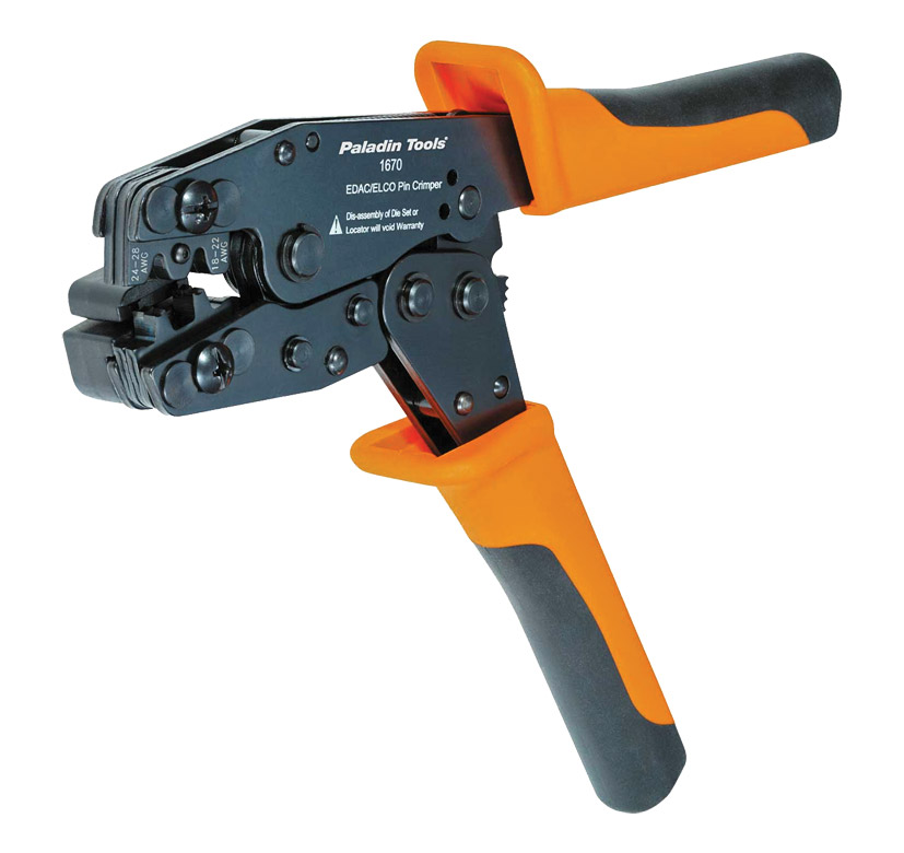 Sertit les contacts EDAC 516 et ELCO (Varelco) 8016. Dispose de positionneurs de broche incorporés afin de correctement aligner les broches et assurer un sertissage précis et fiable ainsi que de poignées caoutchoutées pour le confort de l'utilisateur.