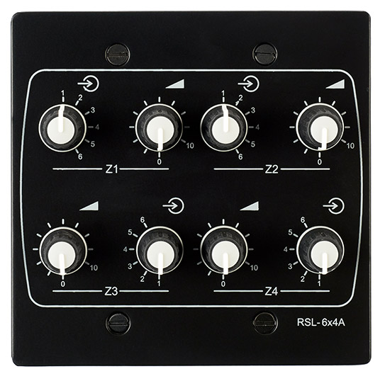 La RSL-4 est ue plaque de commande à distance permettant de sélectionner la source musicale et de régler le volume, disponible en finition noire ou blanche. Offrant un choix de quatre sources, la RSL-4 est compatible avec les amplificateurs-mélangeurs de la série MA60, ainsi qu'avec les modèles 24-120 et 24-240 de Cloud.