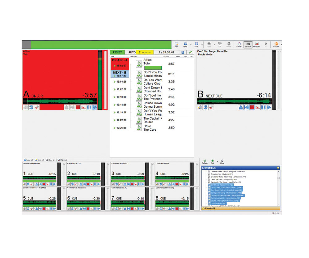 Il existe une fonction "cartwall" permettant de lire rapidement des jingles ou d'autres éléments audio. Le nombre d'emplacements de lecteur est illimité et ces pages peuvent être sauvegardées pour une utilisation ultérieure, ce qui permet aux présentateurs ou à différentes émissions de conserver leurs propres pages de cartwall. L'éditeur de mix inclus permet de créer des points d'enchaînement et d'enveloppe pour le suivi de la voix.