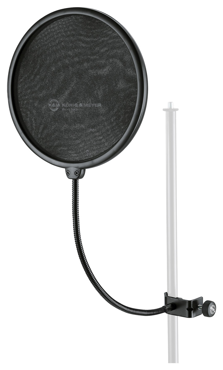 K&M 23966 ECRAN ANTI-POPS avec fixation pour perche, col de cygne 330mm, filtre diam. 200mm, noir Noir Code stock : 53-229