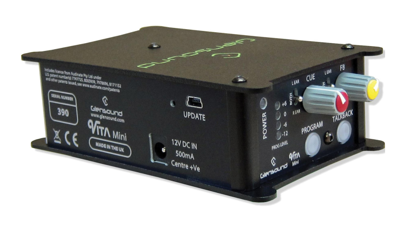 L'utilisateur peut assigner jusqu'à quatre entrées audio à son mixage pour casque pour le monitoring et deux circuits Talkback. Les amplificateurs de microphone sont utilisés en conjonction avec le système de compresseur/limiteur d'arbitre de Glensound pour aider à éviter la surcharge du circuit d'entrée. L'interface principale d'entrée/sortie audio est assurée par le système Dante, ce qui permet d'obtenir un son non compressé à faible retard sur les réseaux.