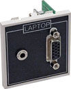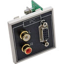 Prise HDD15 de face avant pour VGA et prise HDD15 à 90 degrés à l'arrière permettant l'emploi de câbles VGA prémontés. Le module est aussi doté de trois prises RCA (cinch/phono) plaquées or, une pour la vidéo (jaune) et deux pour l'audio (marquées gauche et droite) avec connexions soudées à l'arrière. Profondeur requise : 35 mm.