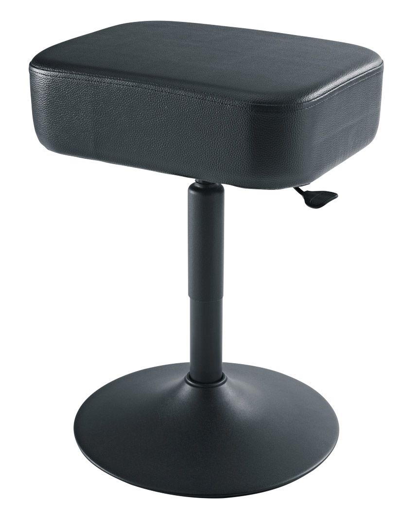 Ce tabouret à assise ergonomique a été conçu pour les musiciens et « soulagera sensiblement la pression exercée sur le dos et préviendra ainsi la fatigue prématurée ». L'assise est recouverte d'un tissu « résistant à l'usure » et peut être réglée librement à n'importe quel angle à l'aide d'un niveau placé en dessous. La hauteur du siège peut être réglée de 650 à 930 mm. Le repose-pieds est également réglable en hauteur. Les embouts de pied intégrés garantissent la solidité et la sécurité du tabouret. Le tabouret peut être plié à plat pour le transport. Dimensions du siège : 380 x 350 mm. Poids : 6,13 kg