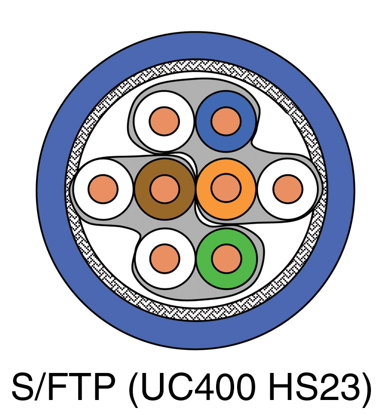 S/FTP Paires torsadées blindées par feuillard, blindage global par tresse