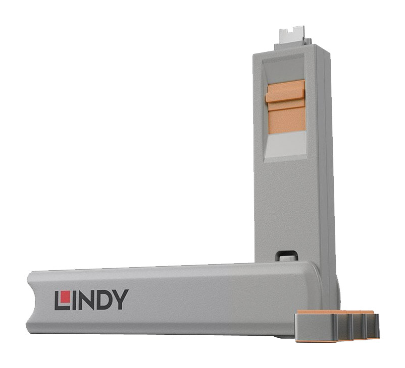 LINDY 40428 PORT BLOCKER KIT USB-C, 1x key, 4x locks, orange Orange Code stock : 46-810