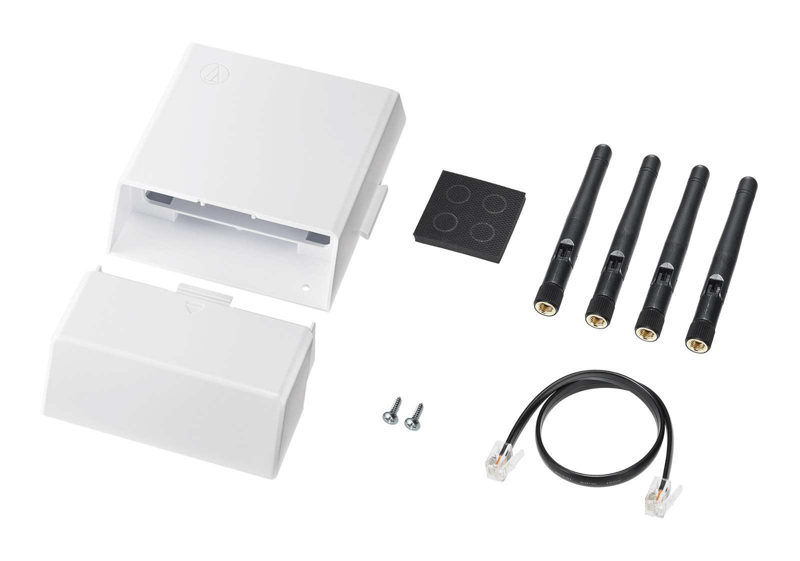 1 émetteur à main ATW-1402, un support d'unité ATW-RU14, un cache pour le support, 2 vis à bois, 4 antennes, 1 embout pour adaptateur secteur, un adaptateur secteur, un adaptateur pour installation en rack (court), un adaptateur pour installation en rack (long), 5 vis de fixation, 1 cordon de raccordement de 30 cm, 4 pieds en caoutchouc et 1 support de microphone AT8456a.