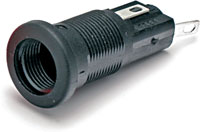 Porte-fusibles Porte-fusible pour panneau (trous 12,8 mm) à ergots, douille isolée (conforme BS3042, IEC257) actionnable par tournevis pour fusible de 20 mm. Fixation par écrou 6…