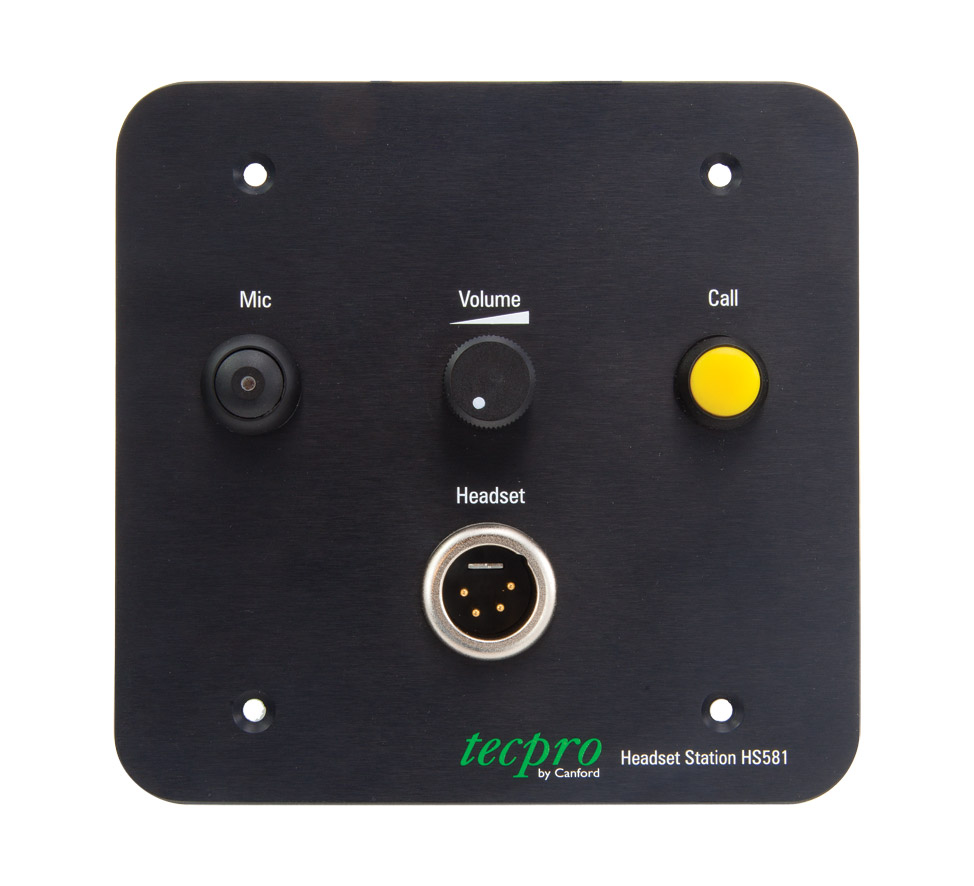Offrant des options similaires à une station ceinture, la Tecpro HS581 est une station pour casque pouvant être encastrée dans un mur, un plan de travail ou une console de contrôle. Les câbles sont raccordés à un bornier à vis sur le circuit imprimé.