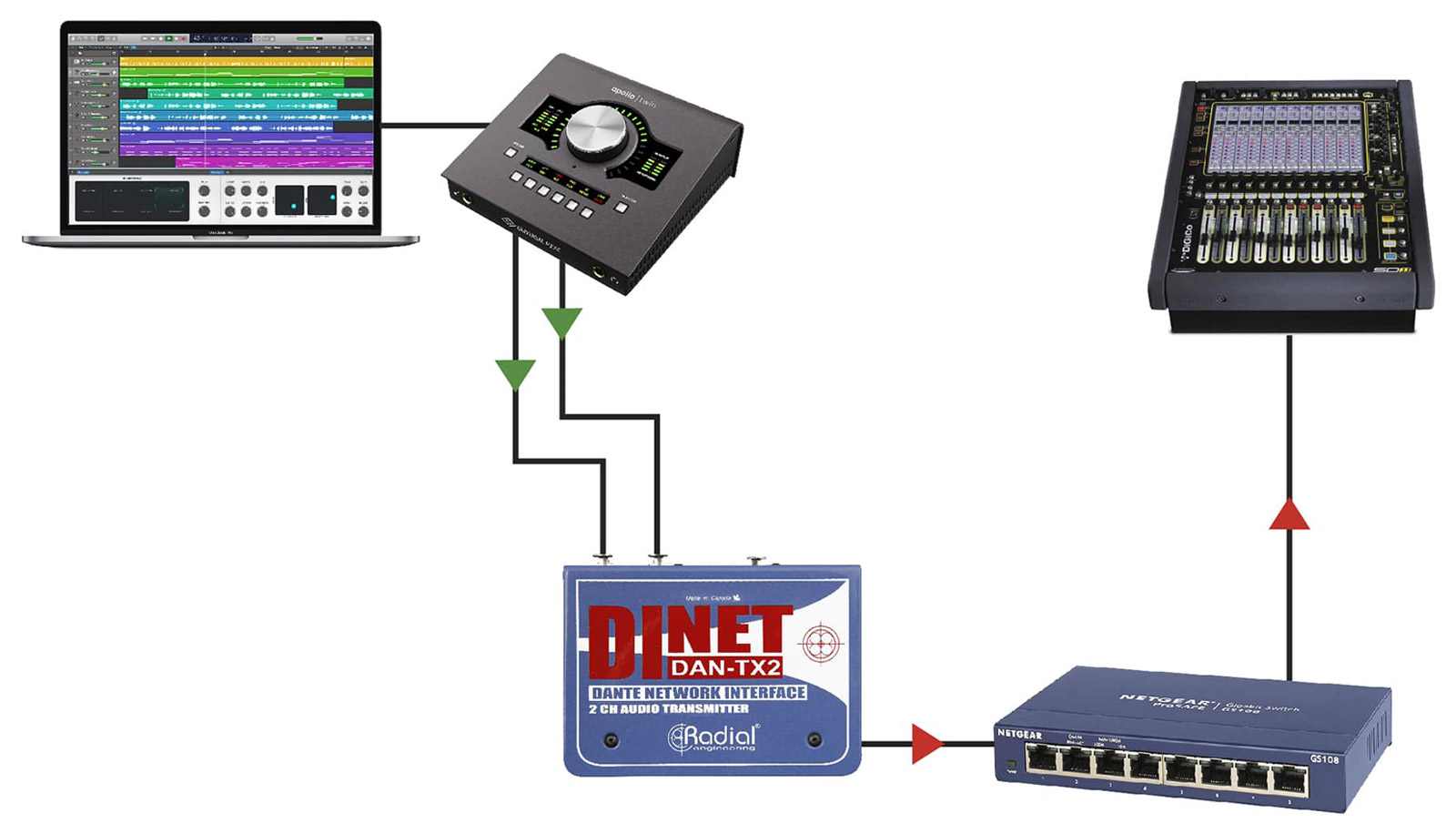 RADIAL DiNET DAN-TX2 NETWORK INTERFACE 2-channel analogue to Dante network, line level, transmitter Code stock : 20-0061