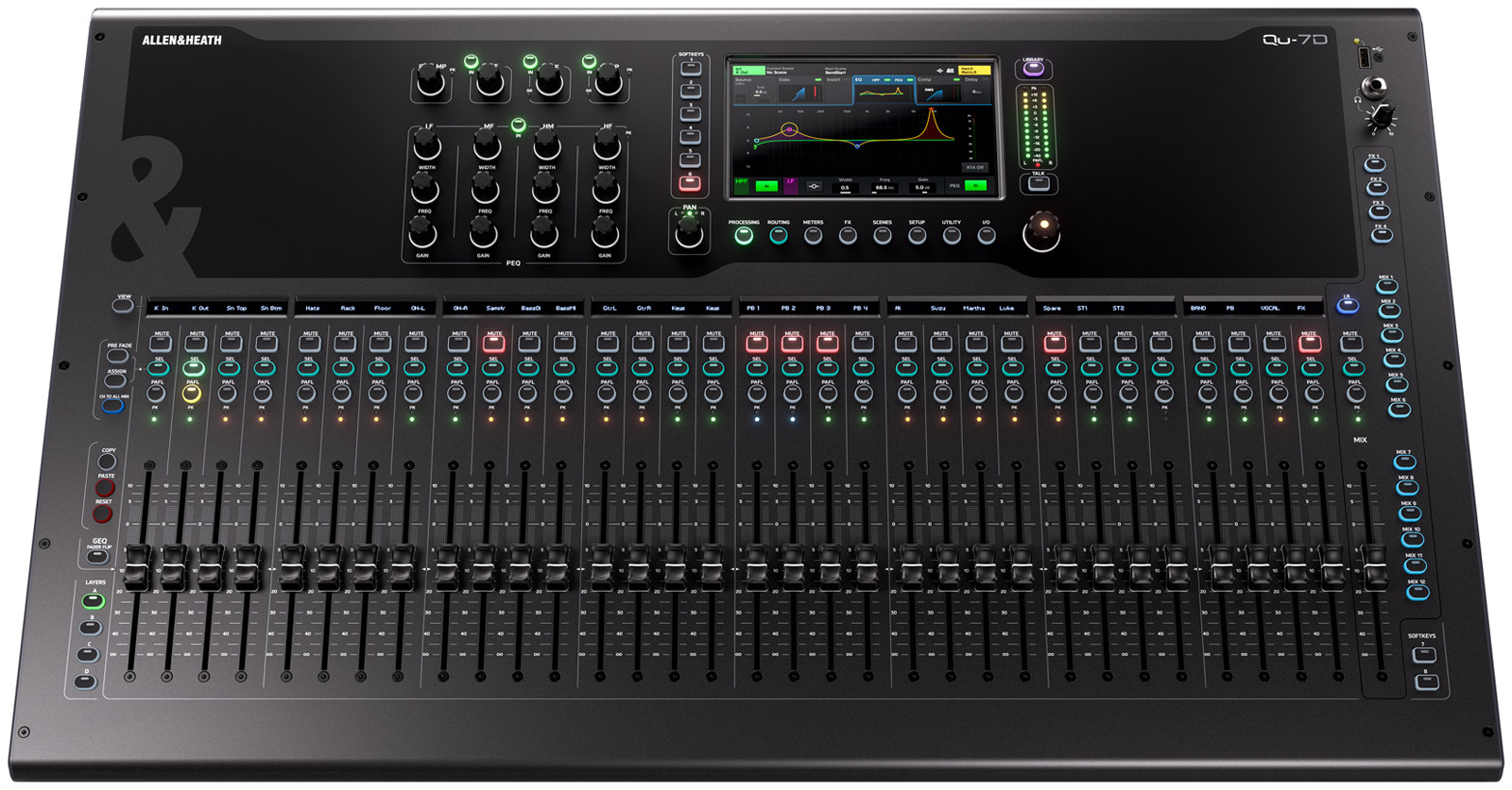 The original Qu mixers were recognised for their ease of use, and Allen & Heath have developed this, maintaining a focus on 'walk up and mix' usability while adding four fully customisable layers, more assignable soft-keys for workflow optimisation, and flexible routing options in addition to the classic 1:1 Qu routing; all accessible via a newly developed, 7-inch capacitive touchscreen interface. Qu’s gain assistant streamlines channel setup by precisely setting the ideal gain level for one or more input channels, while continuously monitoring levels during the performance to avoid any unwanted peaks or surprises. A feedback assistant automatically identifies and removes problematic frequencies with up to sixteen filters per output. And onboard automatic mic mixer (AMM) has been included for environments such as conferencing, panel talks, and TV shows.