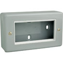 Des plaques doubles sont disponibles en style "plaqué métal" pour montage en surface, livrées complètes avec leur boîtier arrière de surface.