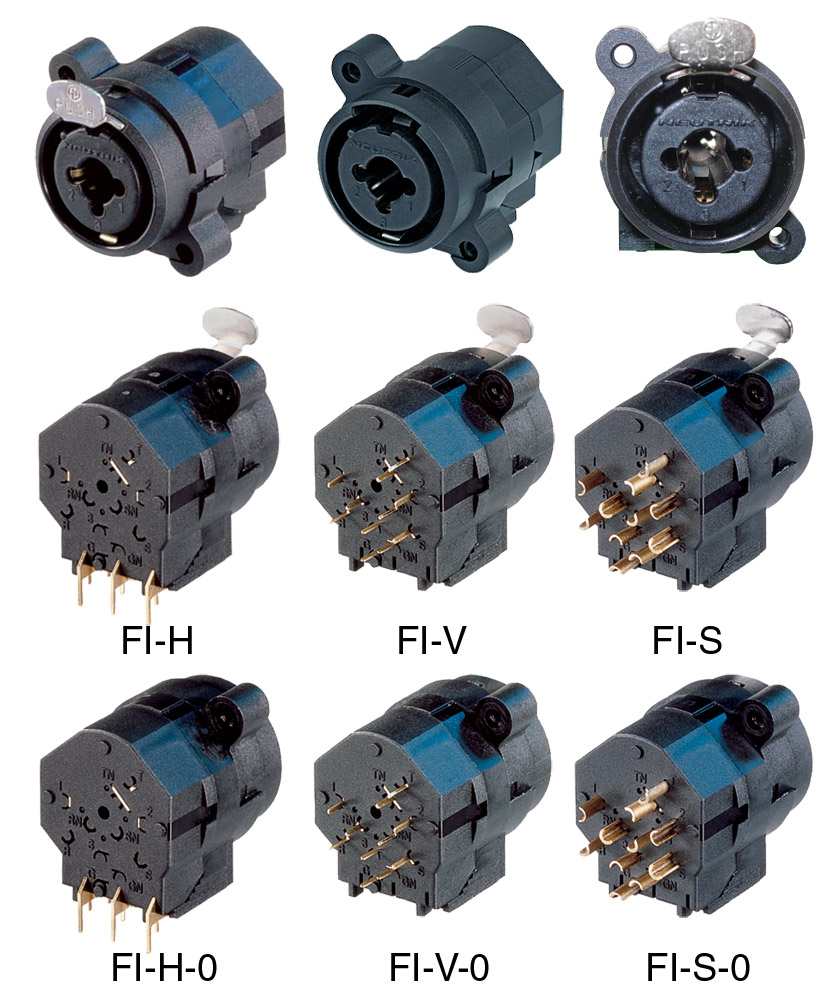 Cette nouvelle combinaison "XLR avec un trou" de séries I “combi” forme le premier connecteur hybride jack/XLR du marché. La rétention du jack se fait à l'aide d'un ressort et non par les contacts, ce qui permet aux contacts de la XLR et du jack d’être en plaqué or. Disponibles en trois versions, à souder (-S), en configuration horizontale (-H) ou verticale (-V) pour C.I., avec verrou (sans suffixe), ou sans verrou (suffixe 0). Le modèle sans verrou dispose d’un ressort de rétention. Vis de montage identiques à celles de la série A. La fixation sur panneau, incompatible avec tout autre type Neutrik (dû à l’implantation à forte densité), s’effectue par vis autotaraudeuses, type PT, au pas de 2.9 x 1.06 (DIN7990), code produit 40-927 (tête plate par 100 pièces) et 40-932 (tête fraisé).
