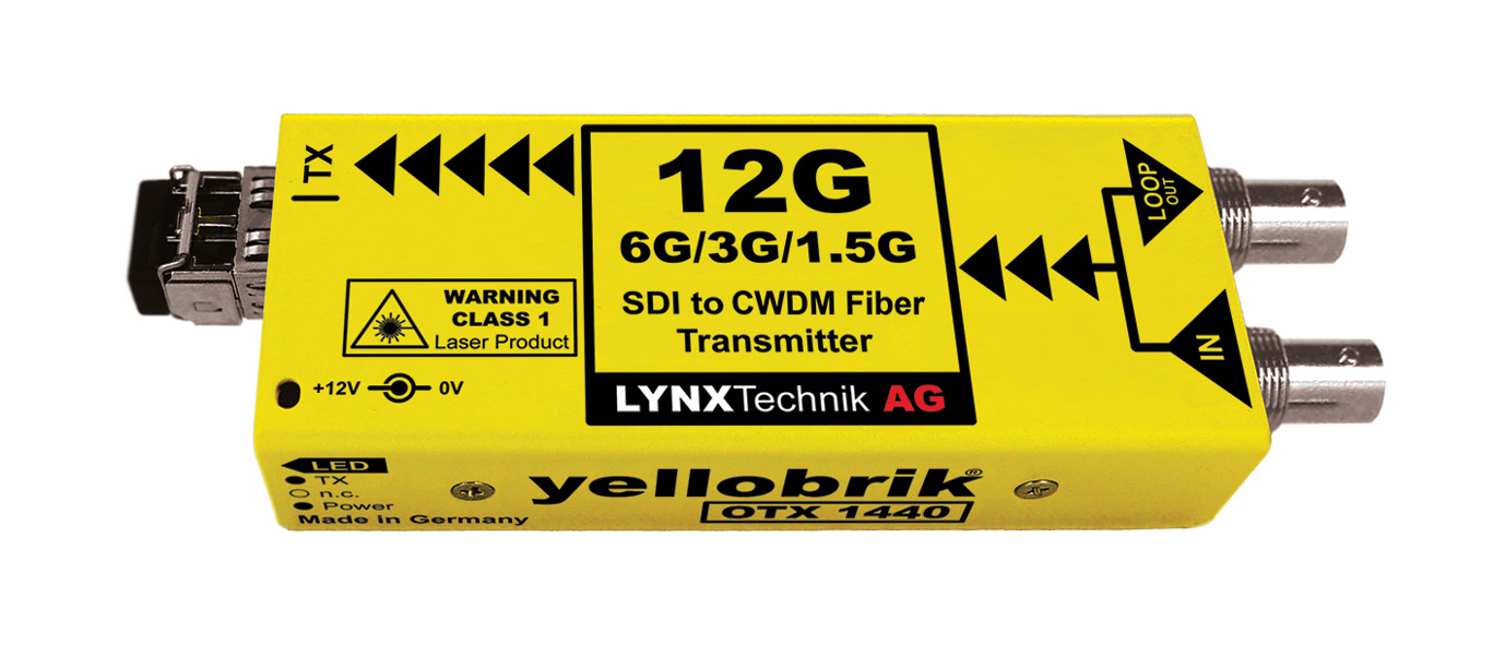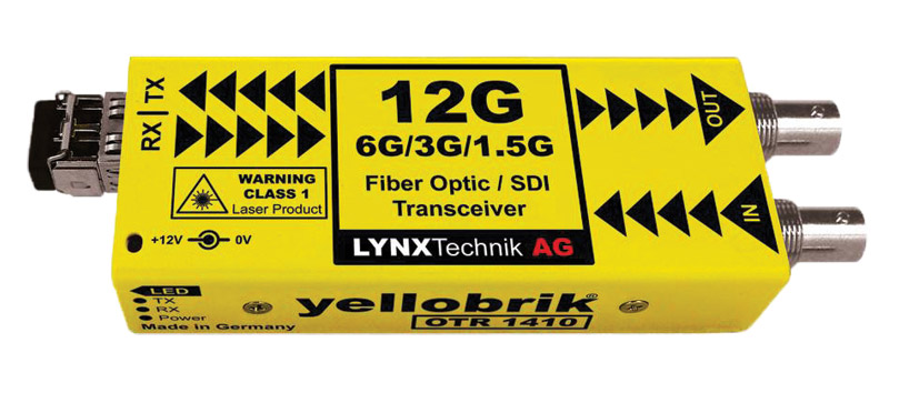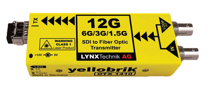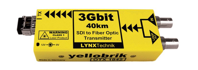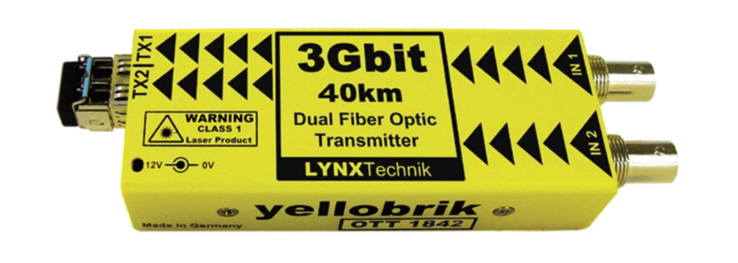 Conçus pour repousser les restrictions impliquées par la distribution de signaux vidéo non compressés de qualité broadcast sur de longues distances, ces modules, éléments de la gamme Yellobrik fabriquée par Lynx Technik, rallongent les circuits vidéo sur des distances pouvant atteindre 10 km au moyen de câbles à fibre optique. Les signaux vidéo SDI sont acceptés jusqu'à 3 Gb/s ; le DVB-ASI est aussi pris en charge. La gamme comprend des émetteurs et récepteurs à fibre optique simple et double canal ainsi que des modules émetteurs-récepteurs avec des voies à la fois de transmission et de réception pour fournir des circuits vidéo bidirectionnels sur, selon le modèle, une paire de fibres ou, par multiplexage WDM, une simple fibre. Les modules peuvent être posés ou montés dans un châssis optionnel pour rack.