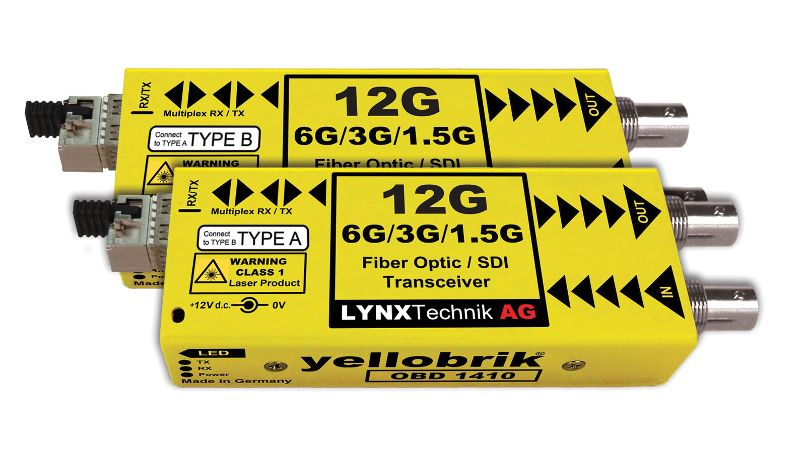 LYNX YELLOBRIK OBD 1410 EMET./RECEPTEUR FIBRE 12G-4K UHD/6G/3G/HD-SDI, Bi-Dir, 1x SM LC, 10km, paire Code stock : 90-3188