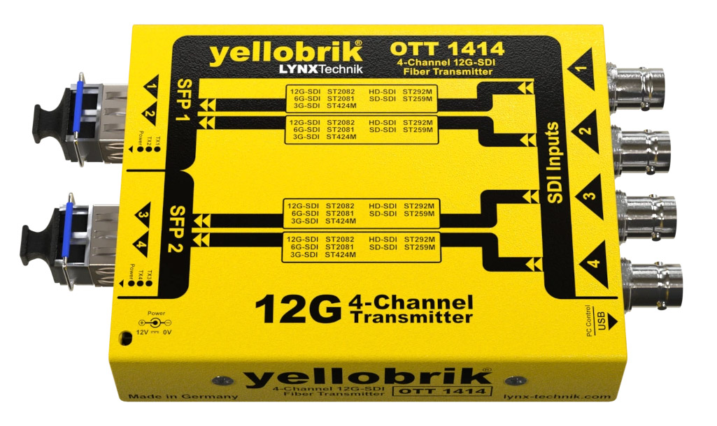 LYNX YELLOBRIK OTT 1414 FIBRE TRANSMITTER 4-Channel, 12G/6G/3G/1.5G-SDI, 2x SM LC, 1310nm,10km Code stock : 90-3401