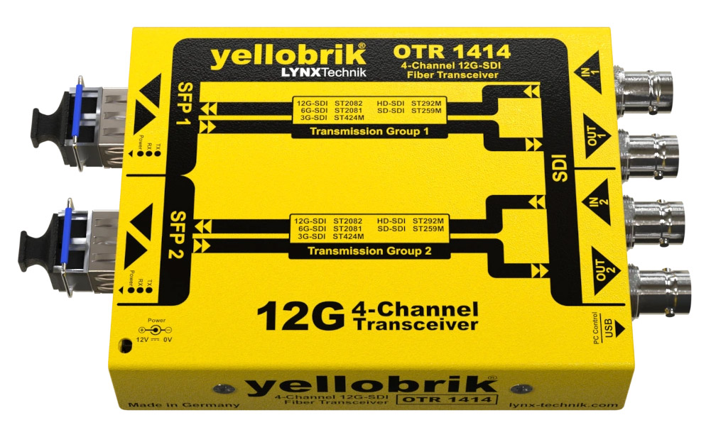 LYNX YELLOBRIK OTR 1414 CW FIBRE TRANSCEIVER 4-Channel, 12G/6G/3G/1.5G-SDI, 2x SM CWDM (without SFP) Code stock : 90-3422
