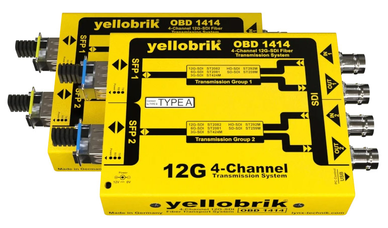 LYNX YELLOBRIK OBD 1414 FIBRE TRANSCEIVER 4-Channel, 12G/6G/3G/HD-SDI, Bi-Dir, 2x SM LC, 10km, pair Code stock : 90-3431