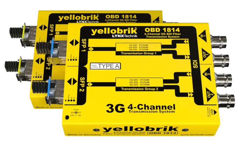 LYNX YELLOBRIK OBD 1814 FIBRE TRANSCEIVER 4-Channel, 3G/HD/SD-SDI, Bi-Dir, 2x SM LC, 10km, pair Code stock : 90-3432