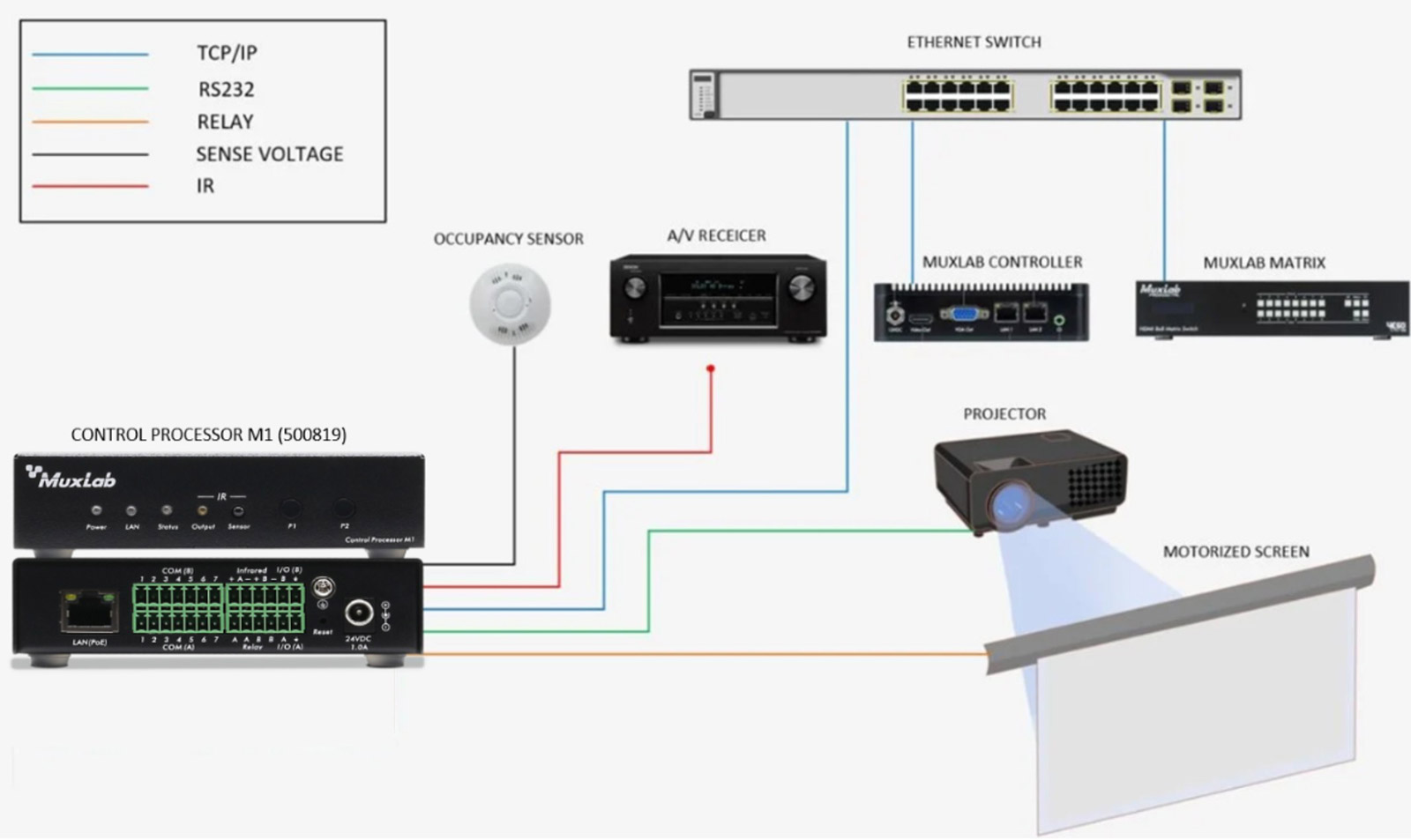 MUXLAB 500819 CONTROL PROCESSOR M1 2x RS-232, 2x infrared, 2x voltage sense, 2x relay ports Code stock : 89-5026