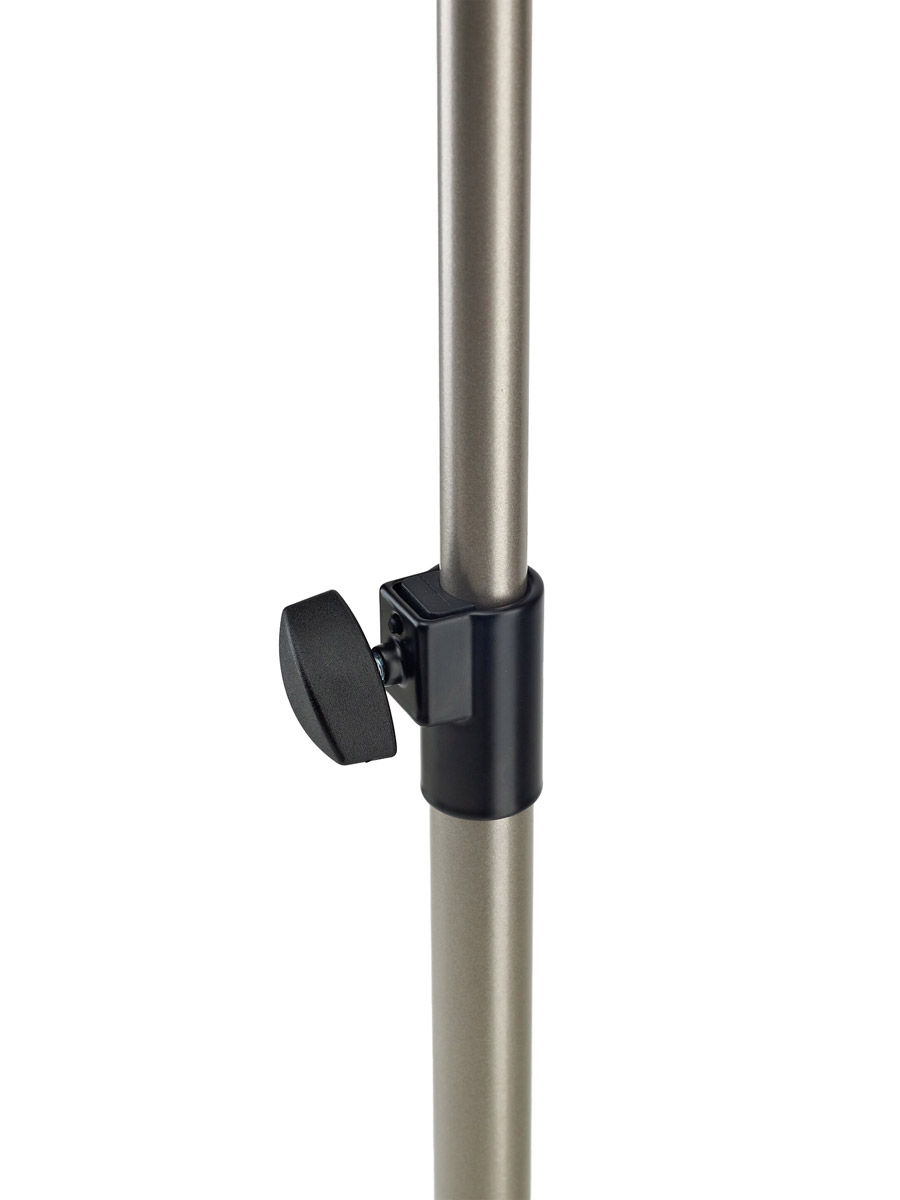 Le 11505 est un pupitre à musique ou à script léger et pliable avec un bras d'extension qui se fixe sur un tube vertical tel qu'un pied de micro. La plage de serrage est comprise entre 11 et 30 mm de diamètre et se resserre à l'aide d'un boulon à vis. Le support à musique mesure 485 x 240 x 42mm, coloré en noir, et peut être réglé en distance du tube de support de 185-265mm à l'aide d'une grande vis à écrou papillon. Poids : 1,08 kg