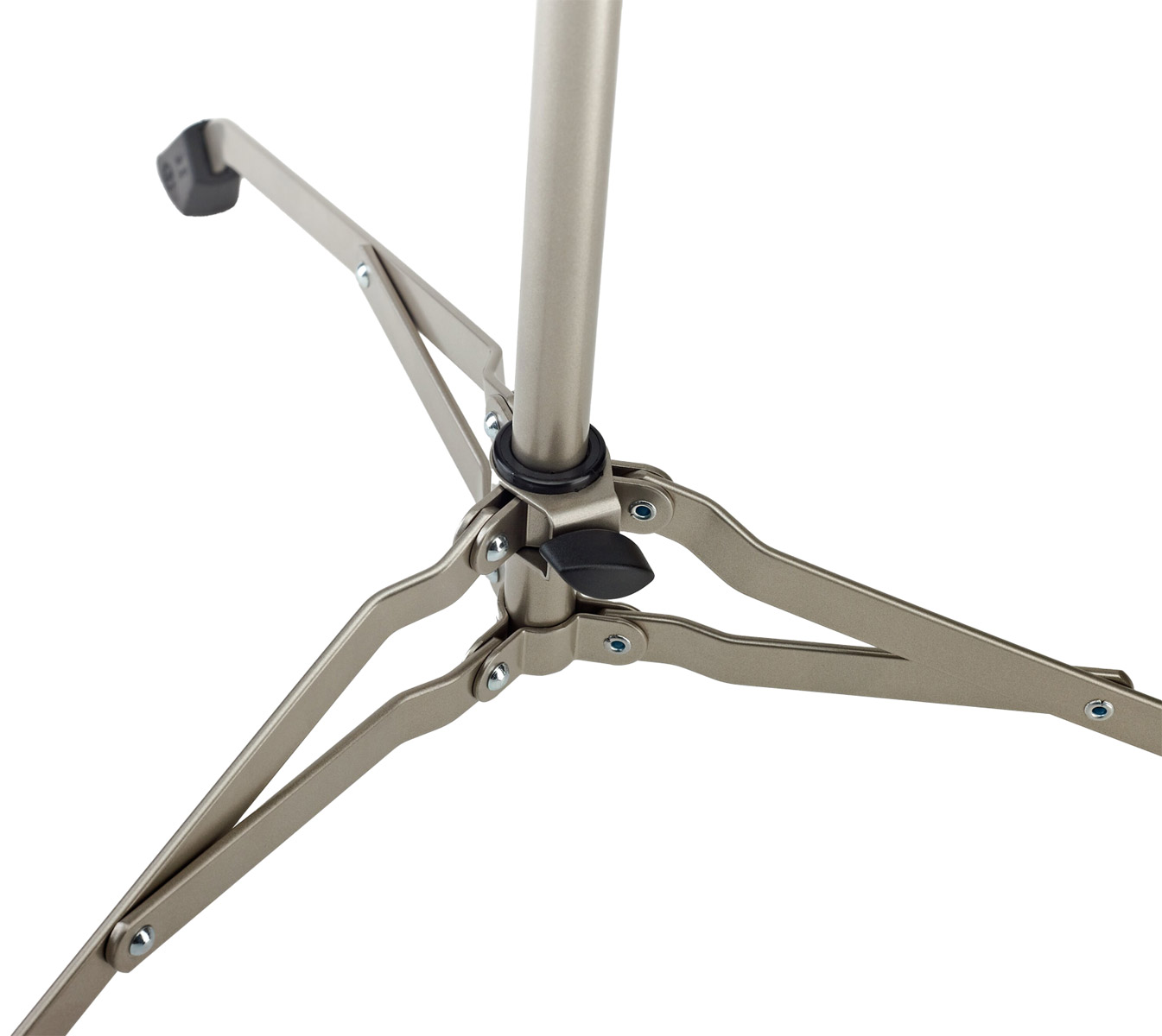 Base pliante pouvant être combinée avec divers pupitres de chef d'orchestre, notamment les pupitres 12332, 12333, 12334, 12335 et 12338, ainsi qu'avec les plateaux de partitions 13236 ou 12337. La hauteur peut être réglée par pas de 40 mm à l'aide d'un levier métallique, avec une plage de hauteur allant de 850 à 1370 mm. Poids : 4,3 kg
