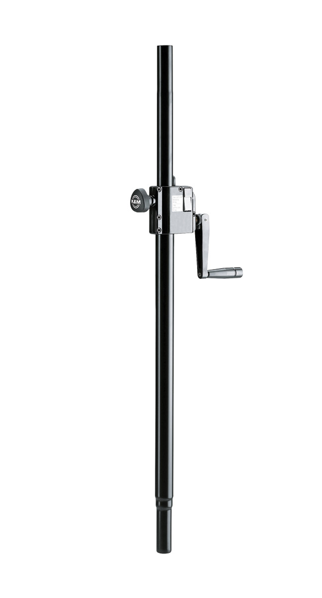 Cette gamme de tubes de liaison K&M est conçue pour monter des haut-parleurs au-dessus d'un subwoofer. Tous les modèles sont fabriqués en acier, de finition noire, et fournis avec des extrémités de 35mm de diamètre ou filetées M20. Sauf mention contraire, les tiges sont télescopiques en deux parties avec réglage en hauteur par vis de blocage, déblocage par bouton-poussoir ou mécanisme à manivelle pour faciliter le levage de l'équipement.
