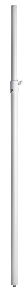 Perche télescopique pour haut-parleur avec vis de fixation à ressort, terminée par un filetage M20. Hauteur réglable de 905mm à 1450mm. Disponible en noir ou blanc. Poids : 2.54kg