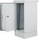 Toutes les versions sont équipées d'un toit d'auvent articulé et étanche, doté d'un mécanisme maintenant l'auvent ouvert pendant l'installation ou la maintenance. Des grilles cachées sur les côtés de l'armoire permettent la ventilation avec un plateau de ventilateur monté sur le toit en option, tout en maintenant la protection EN 60529 IP65.