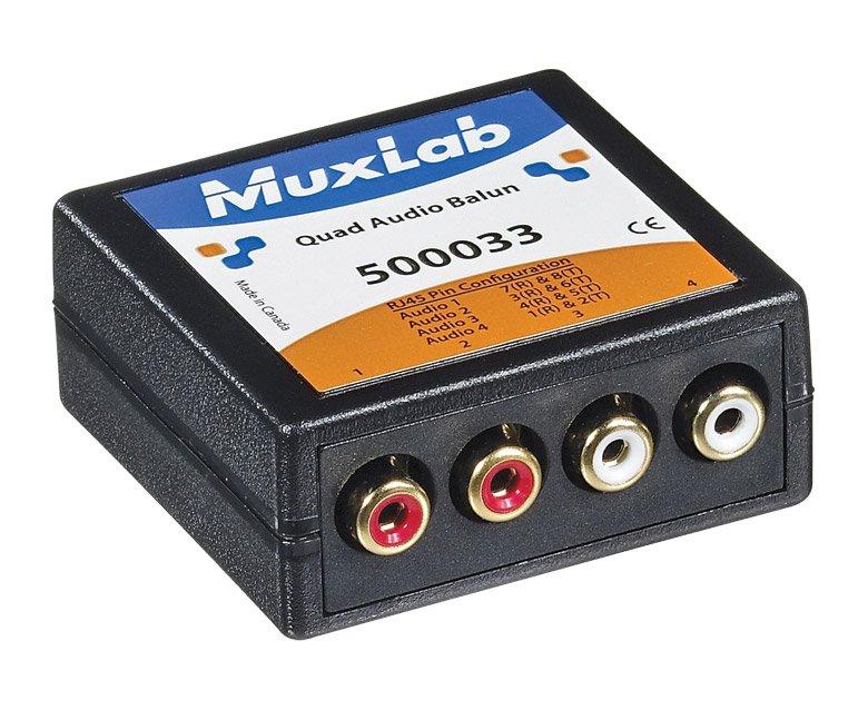 MUXLAB 500033 BALUN QUAD AUDIO 4x RCA FEMALE, RJ45 Code stock : 28-7033
