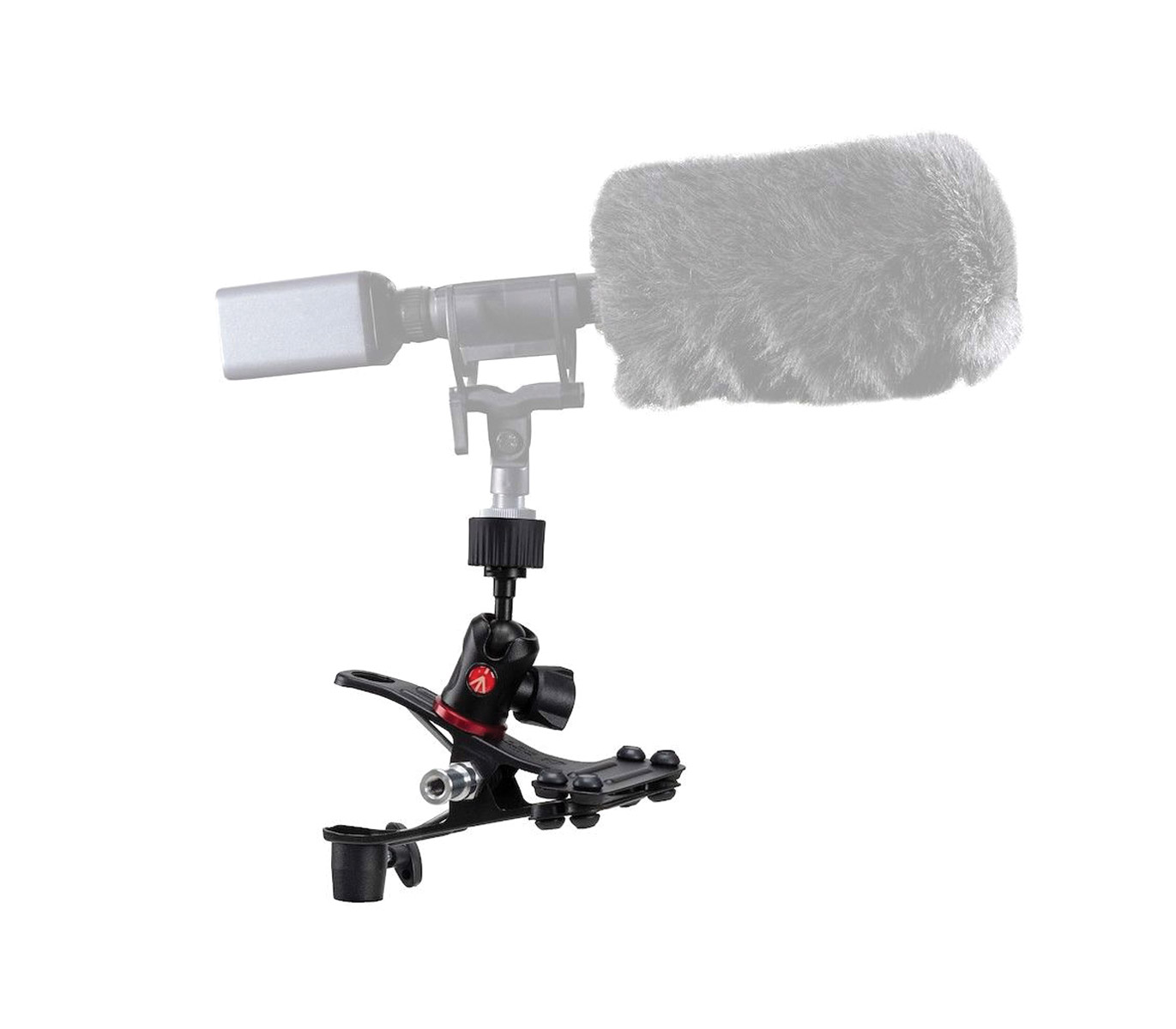 Une sélection de pinces Manfrotto conçues pour faciliter le positionnement d'accessoires tels que les microphones, les réflecteurs, les caméras d'action, les accessoires ou les têtes de flash photographiques.