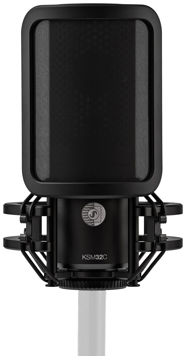 Shure KSM32C is a cardioid microphone that features a 0.75-inch capsule with embossed Mylar diaphragm. This enables the microphone to deliver a smooth, balanced response and 'exceptional' low-frequency performance that is more common in 1-inch capsule designs. Shure have designed the microphone for for vocals, instruments, drum overheads, and ensembles, and it is available in two bundled kits for studio and stage applications. KSM32C has a tuned cardioid pattern that delivers a high level of off-axis rejection (up to 37db down at 180 degrees), allowing a more focussed pickup on the source required and not surrounding instruments.