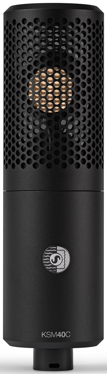 Designed for capturing vocals and instruments, including upright bass, guitar amps and kick drum, KSM40C is a large-diaphragm condenser microphone that features a 'precision-engineered' 1-inch capsule allowing a natural sound with rich low-frequency and high-frequency detail. A proprietary backplate design controls diaphragm behaviour, eliminating sharp resonances. The uniform cardioid polar pattern focuses the source while minimising room and bleed, making placement fast and predictable in multi-mic sessions or less-than-ideal spaces, and smooth proximity effect gives more creative control. An included shock mount and pop filter isolate the microphone from rumble and vibration and block plosives. Also includes a hard mount, a premium case, and a threaded adapter.