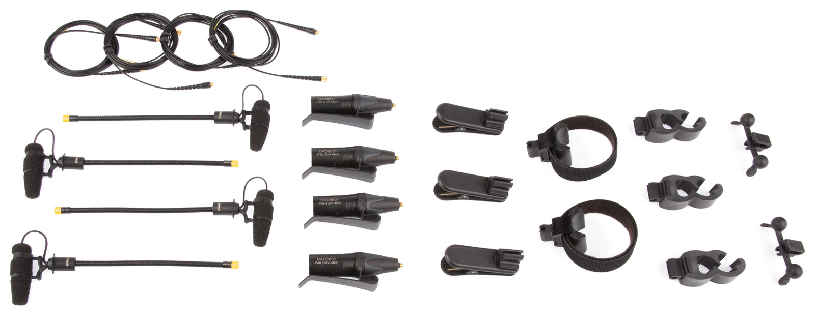 Ce kit comprend 1 microphone 4061-OP-C-B90, 1 bonnette DAD6001, 1 support magnétique DMM0011, 1 support universel DMM0007, 2 bonnettes et 2 supports pour microphone à cordes de MHS6005. Note : MHS6005 est un pack de 5, ce kit comprend 2 supports individuels et non 5.
