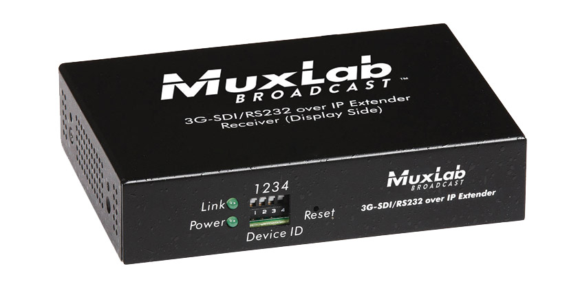 MUXLAB 500756-RX EXTENTER VIDEO récepteur 3G-SDI sur IP, POE, RS232, portée point à point 120m Code stock : 89-0927