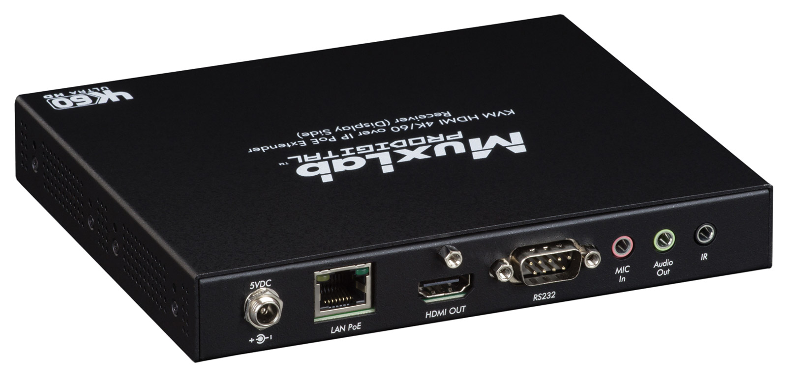 MUXLAB 500772-RX EXTENDER VIDEO récepteur, KVM HDMI sur IP, PoE, UHD-4K, portée 100m Code stock : 89-1009