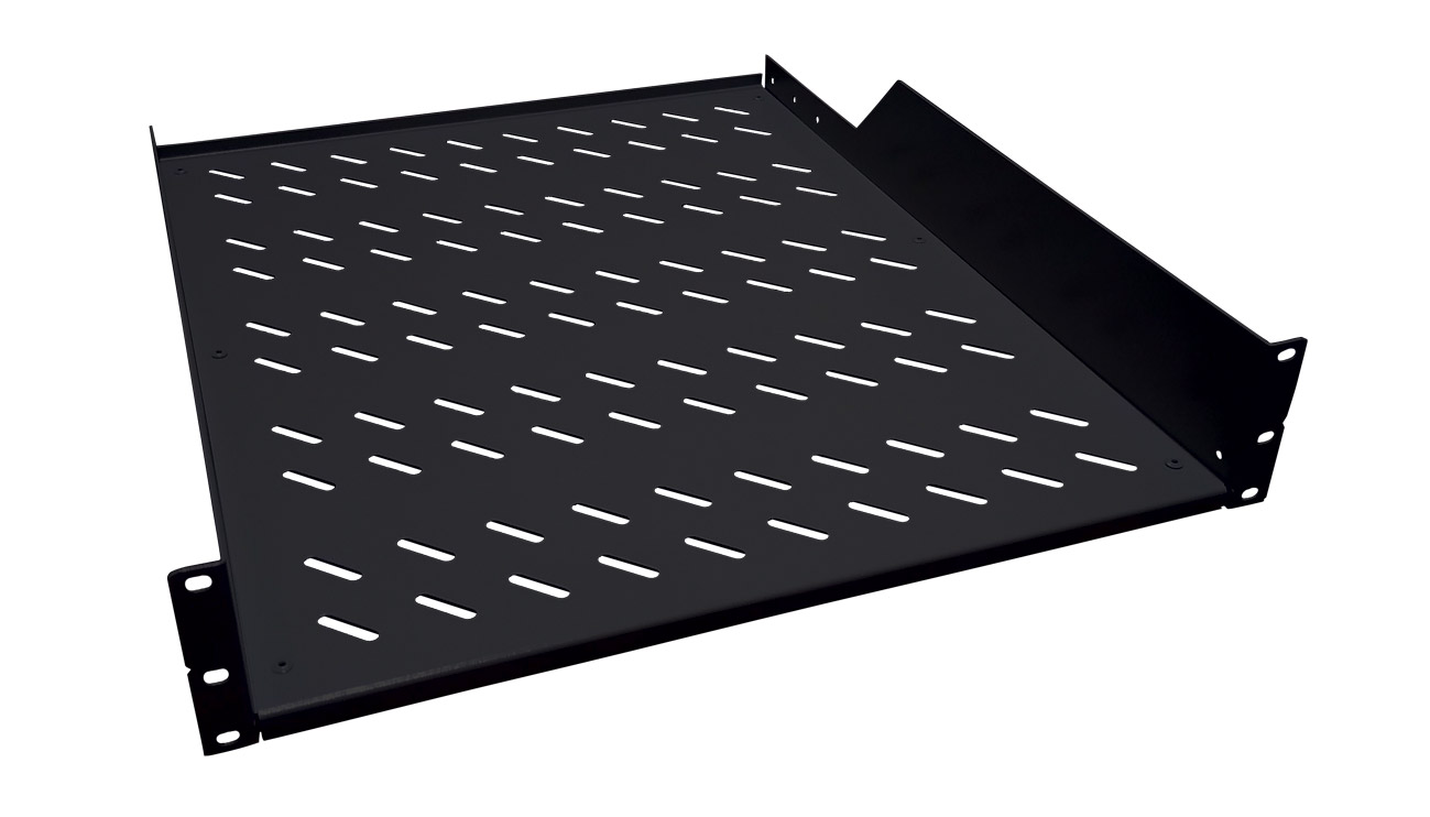 Ces plateaux ventilés en acier se fixent sur la face externe à l’avant ou l’arrière des profilés de fixations 19’ de la majorité des armoires racks, à l’aide des boulons et vis fournis. Utilisés initialement pour accueillir des modems, ces étagères en porte-à-faux permettent de placer de plus petits équipements dans une armoire. Disponibles en hauteur 1U et 2U et en profondeurs entre 200mm et 550mm. Finition : gris clair RAL 71035 ou noir RAL 9005.