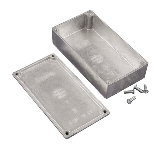 Une gamme de boîtes aluminium moulées, fabriquées par Hammond Electronics conformément au BS1490. Couvercles adaptés fixés par 4 ou 6 vis à tête fraisées suivant la taille (M3,5 x 12 mm). Les boîtes sont livrées sans finition, mais leurs surfaces acceptent toute finition avec un minimum de préparation. Conçu pour répondre à la norme IP54.